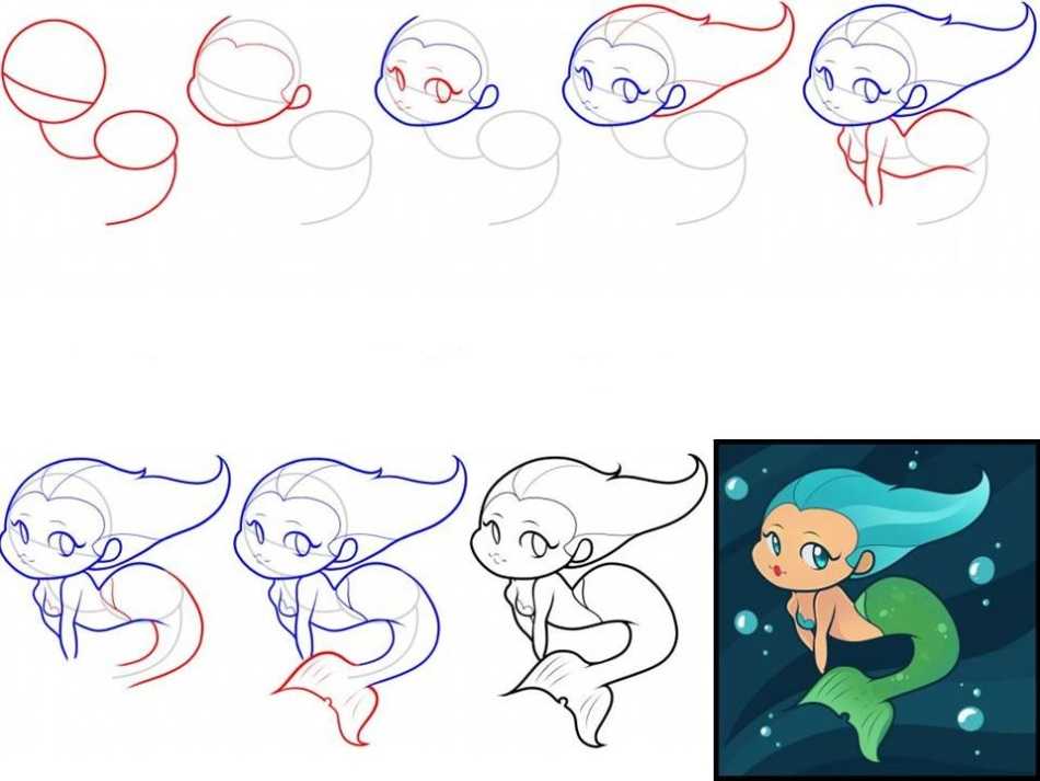 Как нарисовать русалку поэтапно карандашом для начинающих и детей?