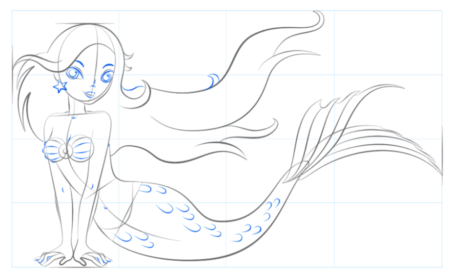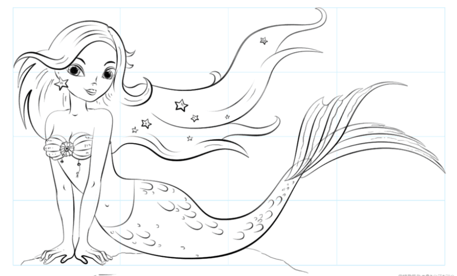 Приступаем к рисованию любимой дочери морского царя Тритона, в этом нам поможет пошаговый пример изображения.