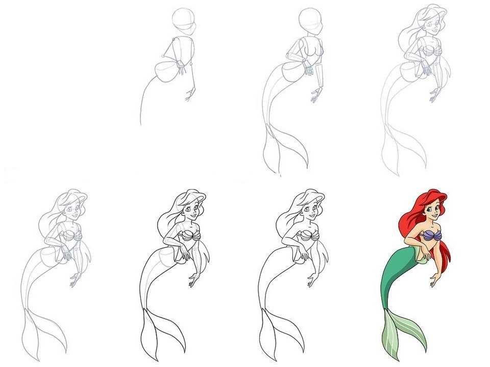 Как легко и просто нарисовать русалку, чтобы она была максимально похожа на героиню мультфильма? Важно соблюсти пропорции и правильно наметить основные детали фигуры: