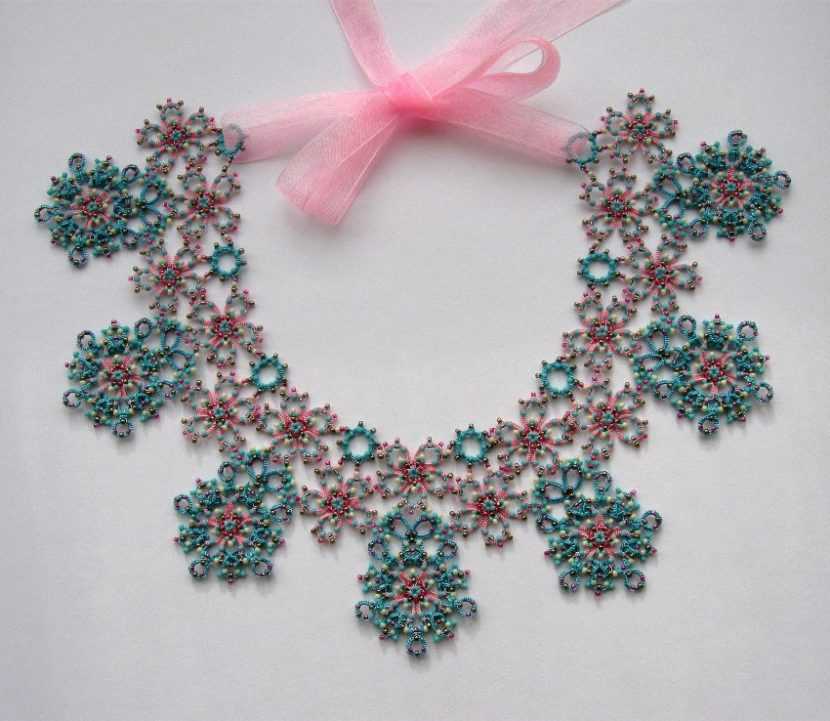 Освоив основные элементы, вы теперь сможете с легкостью читать схемы плетения и получите возможность создать свои первые шедевры. Сплести можно, что душе угодно: украшения, предметы интерьера, плоские игрушки, воротники, салфетки. Особенно красиво в данной технике смотрятся браслеты, колье и серьги.