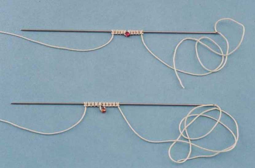 - Спустите все узлы с иглы и протяните по нитке, но не затягивайте. В конце у вас получится петелька, в которую нужно продеть иглу и замкнуть кольцо. Теперь сделайте обычный узел, чтобы зафиксировать плетение.